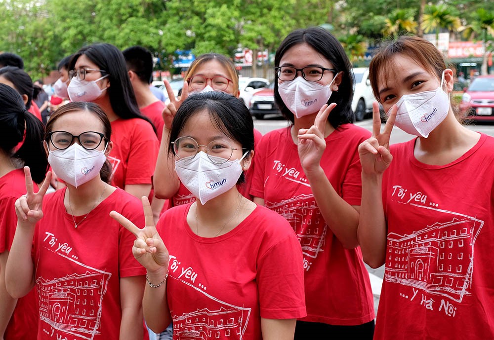 Niềm vui được cống hiến sức trẻ, trí tuệ cho công cuộc phòng chống dịch của các sinh viên Trường Đại học Y Hà Nội trước khi về Bắc Ninh - Ảnh: Trần Minh |