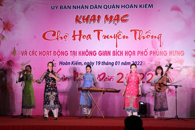 Biểu diễn văn nghệ khai mạc chợ hoa truyền thống Hàng Lược. ảnh: TTXVN |
