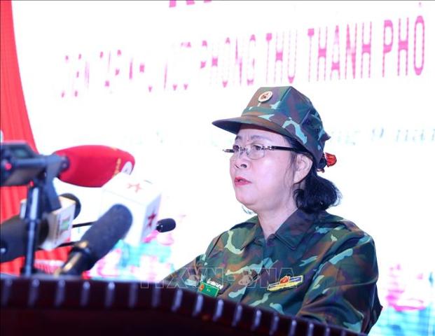 Bí thư Thành ủy Hà Nội Bùi Thị Minh Hoài phát biểu tại lễ khai mạc. Ảnh: Văn Điệp/TTXVN |