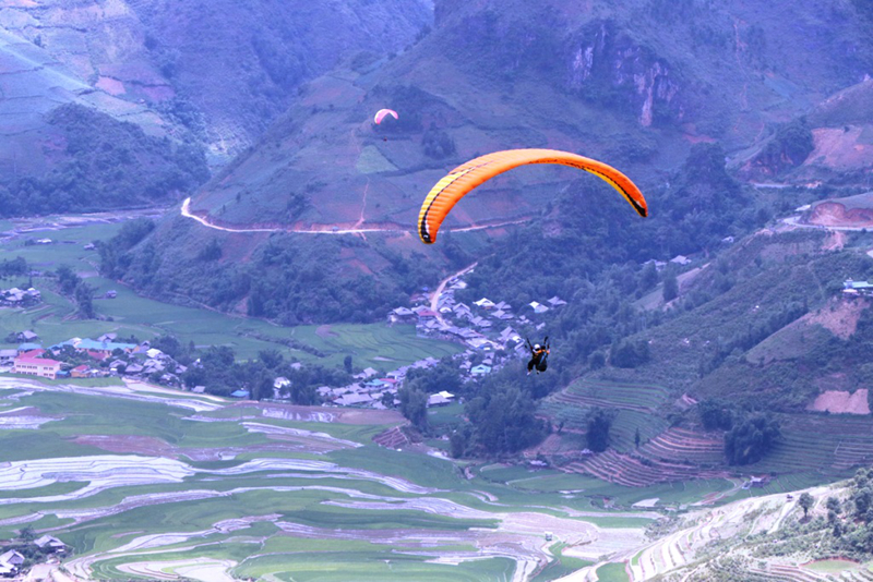 Bên cạnh đó, các du khách cũng đăng kí bay cùng các phi công trên những thửa ruộng bậc thang vào mùa nước đổ, một trong những thời điểm đẹp nhất trong năm ở Mù Cang Chải. Bà Lương Thị Xuyến, Phó Chủ tịch UBND huyện Mù Cang Chải, tỉnh Yên Bái cho biết: "Năm nay có nét mới là bay đôi hóa trang, mọi năm thì chỉ phi công hóa trang, năm nay du khách bay kèm với phi công cũng hóa trang thành các hình ảnh, hình tượng khác để tạo sự hấp dẫn".