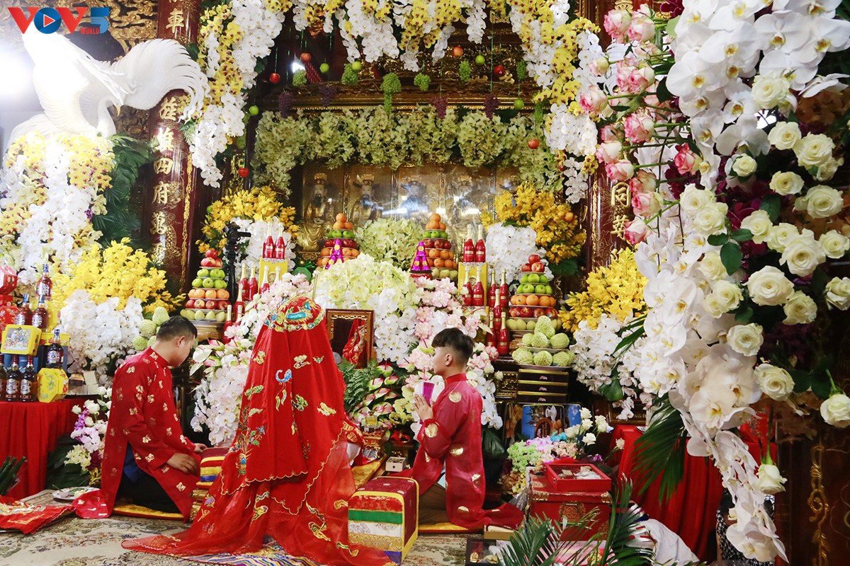 Một giá hầu đồng của các thanh đồng tại Festival Thực hành tín ngường thờ Mẫu Thượng ngàn lần thứ IV. Ảnh: Thừa Xuân/VOV |