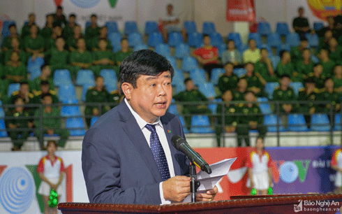 Ông Nguyễn Thế Kỷ - Ủy viên Trung ương Đảng, Tổng Giám đốc Đài Tiếng nói Việt Nam (VOV) phát biểu tại lễ khai mạc giải - Ảnh: Baonghean.vn |