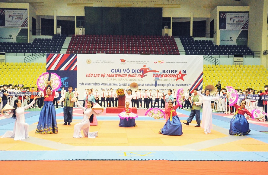 Tối 7/3, tại thành phố Tam Kỳ, tỉnh Quảng Nam, khai mạc Giải Vô địch các Câu lạc bộ Taekwondo quốc gia cúp Đại sứ Hàn Quốc năm 2022.