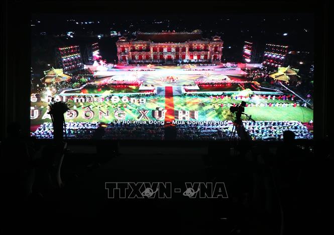 Trình chiếu di sản của thành phố Huế tại hội nghị. Ảnh: TTXVN |