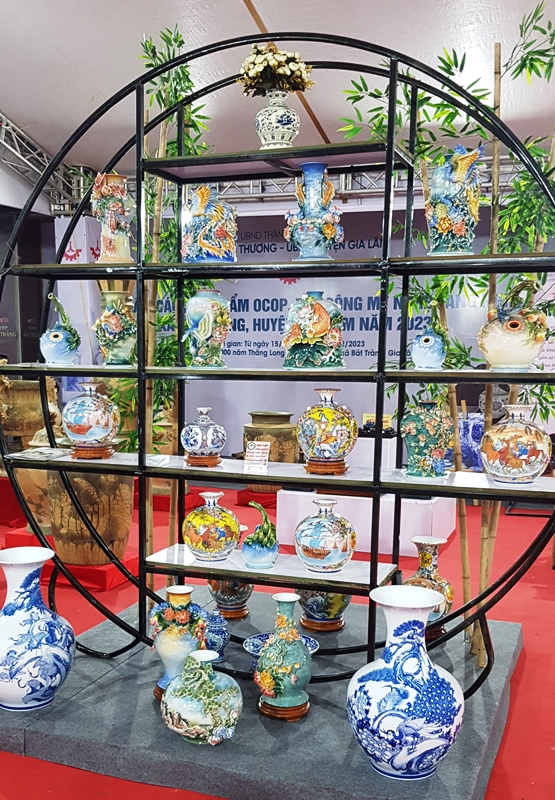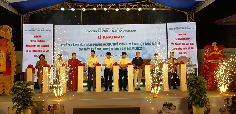 Triển lãm các sản phẩm OCOP, thủ công mỹ nghệ và làng nghề xã Bát Tràng, huyện Gia Lâm, Hà Nội khai mạc tối qua (15/12) tại khu triển lãm 1000 năm Thăng Long - Hà Nội, thôn 1, xã Bát Tràng, huyện Gia Lâm, thành phố Hà Nội.