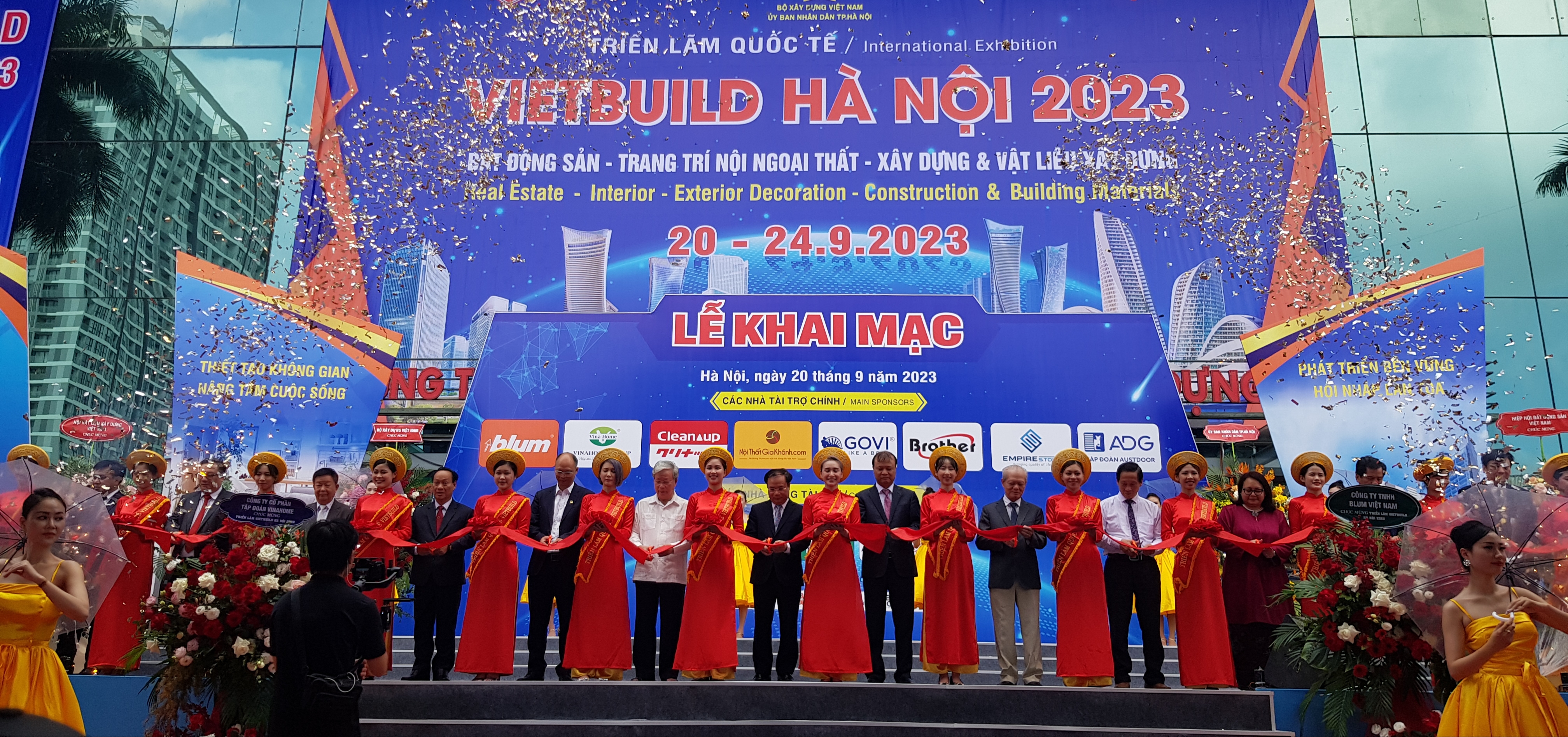 Triển lãm quốc tế VIETBUILD Hà Nội 2023 lần thứ hai với chủ đề “Bất động sản - Trang trí nội ngoại thất - Xây dựng & Vật liệu xây dựng” khai mạc sáng nay (20/9) tại Cung Triển lãm Kiến trúc, Quy hoạch & Xây dựng Quốc gia, Hà Nội.