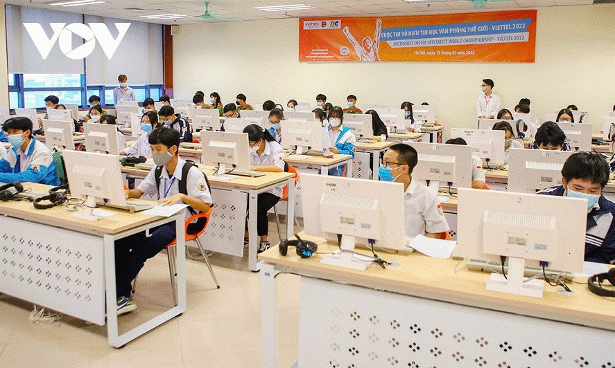 Thí sinh cả nước tham gia vòng loại quốc gia Giải Vô địch Tin học văn phòng Thế giới. Ảnh: VOV |