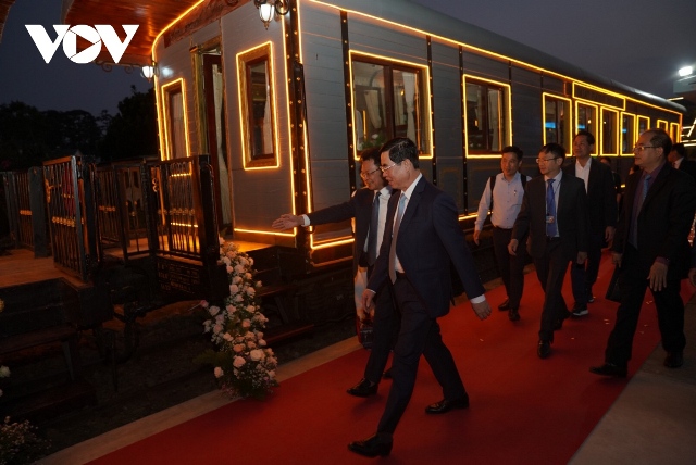 Đêm khai trương tuyến tàu đêm có lãnh đạo tỉnh Lâm Đồng đến dự và trải nghiệm. Ảnh: Quang Sáng/VOV |