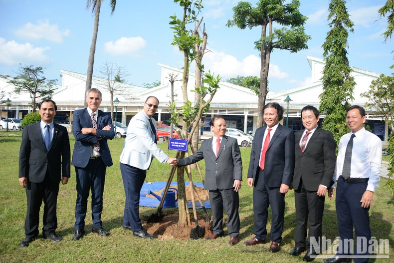 Các đại biểu cùng trồng cây lưu niệm tại khuôn viên của Trung tâm hướng nghiệp Pháp ngữ Đà Nẵng - Ảnh: nhandan.vn |