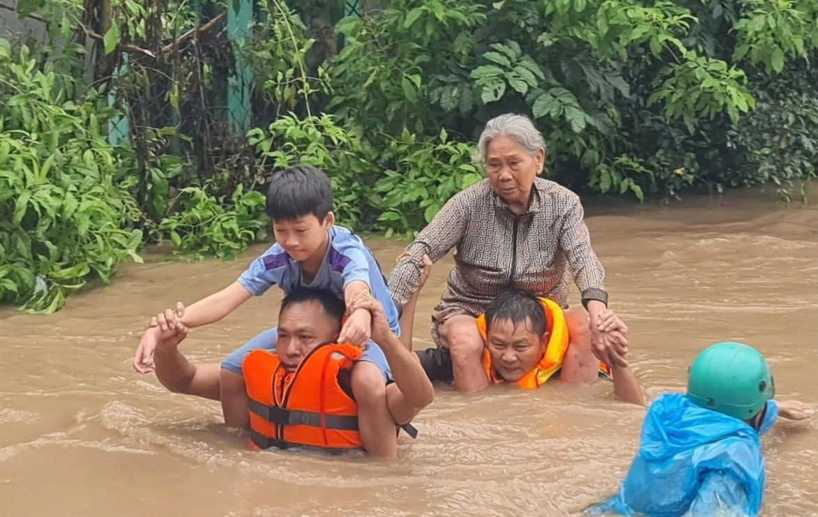 Nhu yếu phẩm cũng được vận chuyển tới từng mái nhà. Tại một số xã, lực lượng cứu hộ vừa di dời người già, trẻ nhỏ, vừa mang theo thức ăn, nước uống để bà con không phải đói khát giữa mưa.