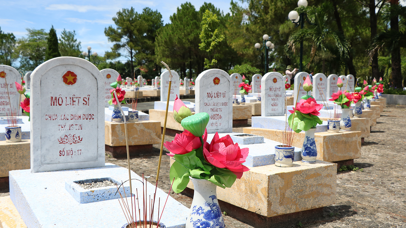 Nghĩa trang liệt sĩ quốc gia Đường 9, nơi yên nghỉ của gần 11 ngàn anh hùng liệt sĩ khắp mọi miền Tổ quốc, hơn một nửa số mộ ở đây chưa xác định được thông tin. Ông Nguyễn Thế Lâm, cán bộ Ban Quản lý nghĩa trang liệt sĩ quốc gia Đường 9 chia sẻ, mỗi cán bộ, nhân viên đơn vị đảm nhận chăm sóc khoảng 1.000 ngôi mộ, trong đó có nhiều phần mộ chưa rõ thông tin. Ban Quản lý thường xuyên phối hợp với các đơn vị, địa phương, thân nhân để xác định thông tin, đảm bảo tốt công tác chăm sóc, hương khói các anh hùng liệt sĩ.