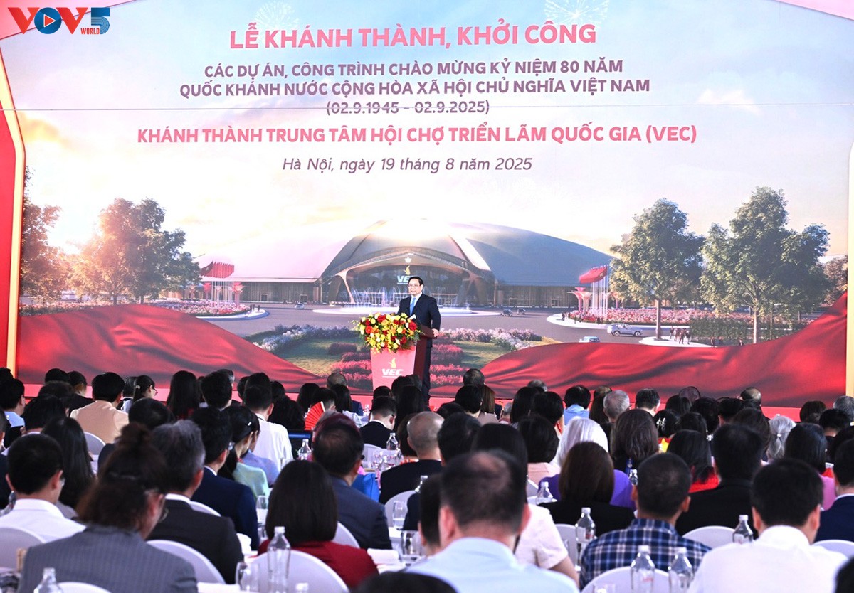Sáng nay (19/08), trên cả nước diễn ra đồng loạt lễ khởi công, khánh thành 250 công trình, dự án chào mừng kỷ niệm 80 năm Cách mạng Tháng Tám thành công và Quốc khánh nước Cộng hòa xã hội chủ nghĩa Việt Nam (2/9/1945 - 2/9/2025). Buổi lễ được tổ chức theo hình thức trực tuyến từ điểm cầu trung tâm (tại Trung tâm hội chợ triển lãm Quốc gia, Hà Nội) đến 79 điểm cầu của 34 tỉnh, thành phố. Tổng Bí thư Tô Lâm, Thủ tướng Phạm Minh Chính tham dự sự kiện tại điểm cầu Trung tâm hội chợ triển lãm Quốc gia.