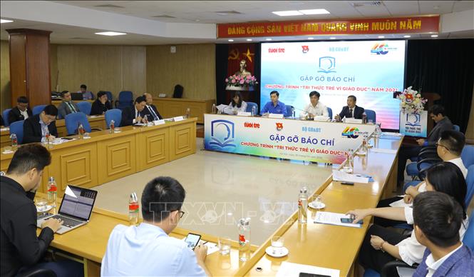 Quang cảnh buổi Gặp gỡ báo chí thông tin về Chương trình Tri thức trẻ vì giáo dục” năm 2021- 2022. Ảnh: Văn Điệp/TTXVN |