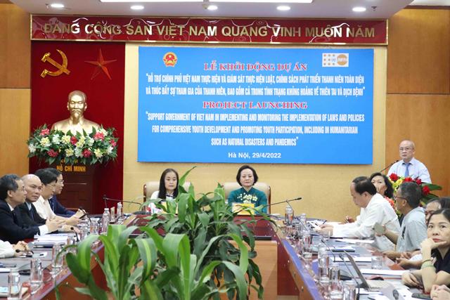 Chiều 29/4, Bộ Nội vụ và Quỹ dân số Liên hợp quốc tại Việt Nam tổ chức Lễ khởi động dự án "Hỗ trợ Chính phủ Việt Nam thực hiện và giám sát thực hiện luật, chính sách phát triển thanh niên toàn diện và thúc đẩy sự tham gia của thanh niên, bao gồm cả trong tình trạng khủng hoảng về thiên tai và dịch bệnh” (dự án VNM10P01).