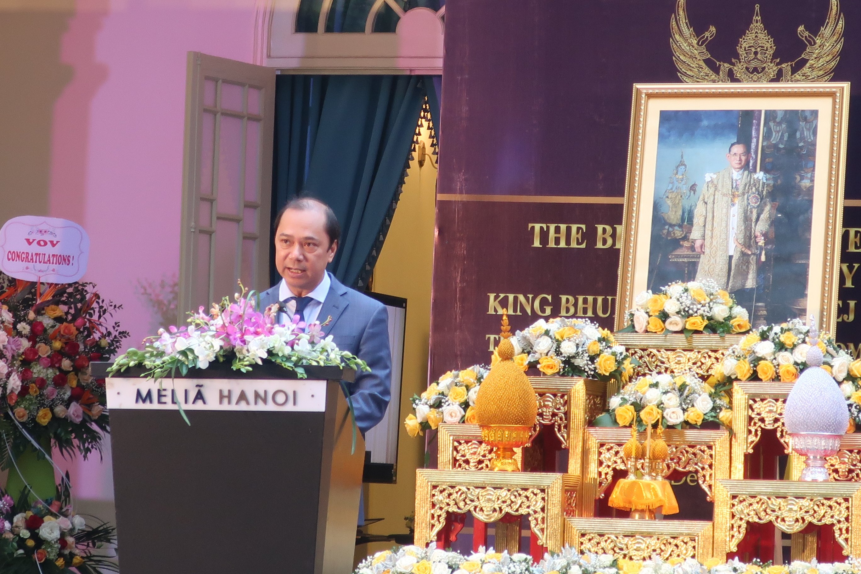 Thay mặt Chính phủ, nhân dân Việt Nam, Thứ trưởng Ngoại giao Nguyễn Quốc Dũng gửi lời chúc mừng tốt đẹp đến Chính phủ Hoàng gia cùng nhân dân Thái Lan. Đồng thời, gửi lời cảm ơn Chính phủ Thái Lan ủng hộ 30.000 USD hỗ trợ khắc phục hậu quả thiên tai ở các tỉnh miền Trung Việt Nam và cho biết: “Với tư cách là nước láng giềng và thành viên trong ASEAN, quan hệ đối tác chiến lược Việt Nam - Thái Lan đã phát triển nhanh chóng trong năm vừa qua.