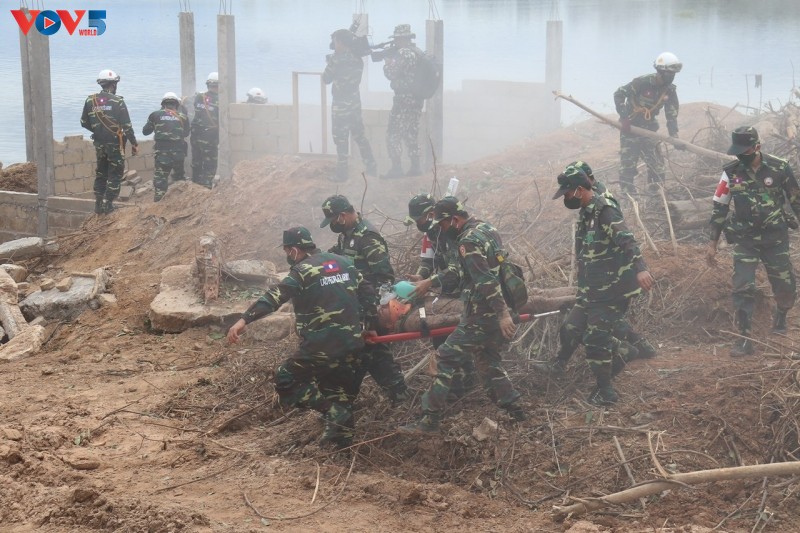 Theo ban tổ chức, có hơn 500 cán bộ, chiến sĩ thuộc quân đội ba nước tham gia diễn tập chung về cứu hộ-cứu nạn. Ảnh: PV VOV tại Lào |