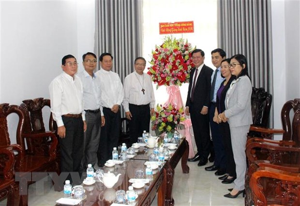 Ban Dân vận Trung ương thăm, chúc mừng Lễ Giáng sinh Tòa Giáo mục Phan Thiết. - Ảnh: Hồng Hiếu/TTXVN |