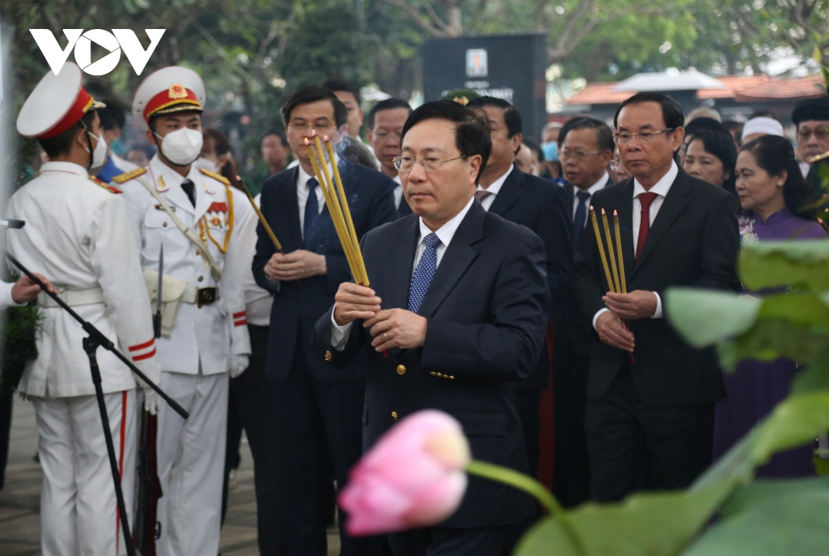 Tại Nghĩa trang Thành phố Hồ Chí Minh, nơi yên nghỉ của các nguyên lãnh đạo Đảng, Nhà nước và Thành phố Hồ Chí Minh, Đoàn đại biểu đã dâng hương, hoa lên Đài tưởng niệm. Sau đó, Đoàn di chuyển về khu vực phần mộ của Thủ tướng Võ Văn Kiệt và dành phút mặc niệm, dâng hương, dâng hoa với lòng thành kính, tưởng nhớ, tri ân nhà lãnh đạo xuất sắc của Đảng, Nhà nước và Nhân dân.