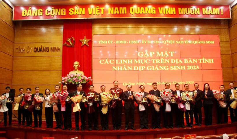Cùng ngày, tại Quảng Ninh, diễn ra cuộc gặp mặt các linh mục trên địa bàn tỉnh nhân dịp Giáng sinh năm 2023. Bí thư Tỉnh ủy, Chủ tịch Hội đồng nhân dân tỉnh Quảng Ninh Nguyễn Xuân Ký yêu cầu các cơ quan chức năng của tỉnh quan tâm, tạo điều kiện giúp đỡ, hỗ trợ giải quyết các nhu cầu hợp pháp, chính đáng của các linh mục và bà con trong hoạt động tôn giáo, tín ngưỡng. Bí thư Tỉnh ủy Quảng Ninh mong muốn các linh mục sẽ tiếp tục sát cánh cùng chính quyền, góp thêm tiếng nói để lan tỏa những chủ trương, chính sách đến với đồng bào Công giáo; đồng thời, lan tỏa tinh thần khát vọng phát triển đối với đồng bào, tạo đồng thuận xã hội.