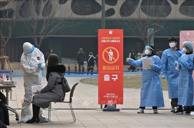 Nhân viên y tế lấy mẫu xét nghiệm COVID-19 cho người dân tại Seoul, Hàn Quốc. Ảnh minh họa: AFP/TTXVN |
