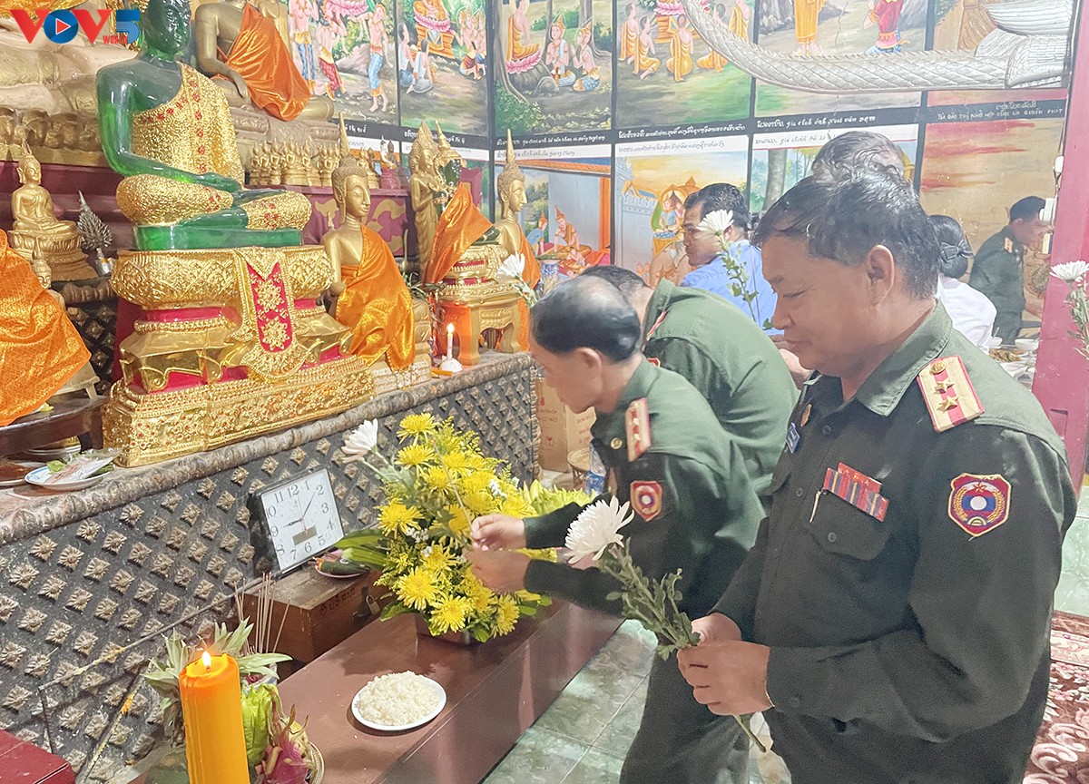 Lễ cầu siêu cho các anh hùng liệt sĩ Việt Nam và Lào đã hy sinh vì sự nghiệp đấu tranh giải phóng dân tộc. Ảnh: PV/VOV-Vientiane |