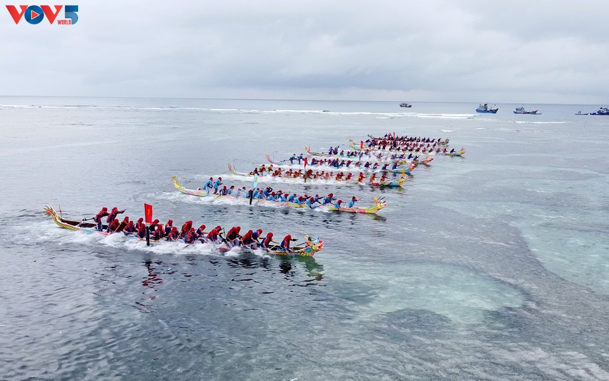 Lễ hội đua thuyền truyền thống Tứ linh tại đảo Lý Sơn, tỉnh Quảng Ngãi. Ảnh: VOV |
