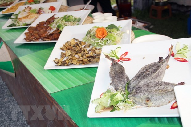 Các món ngon đặc sản Việt được trình bày công phu tại Lễ hội văn hóa ẩm thực, món ngon Saigontourist Group 2023. Ảnh: Mỹ Phương/TTXVN |