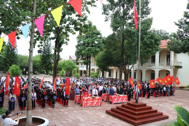 Lễ khai giảng tại trường THPT nội trú Nơ Trang Lơng, thành phố Buôn Ma Thuột, tỉnh Đắk Lắk. Ảnh: VOV |