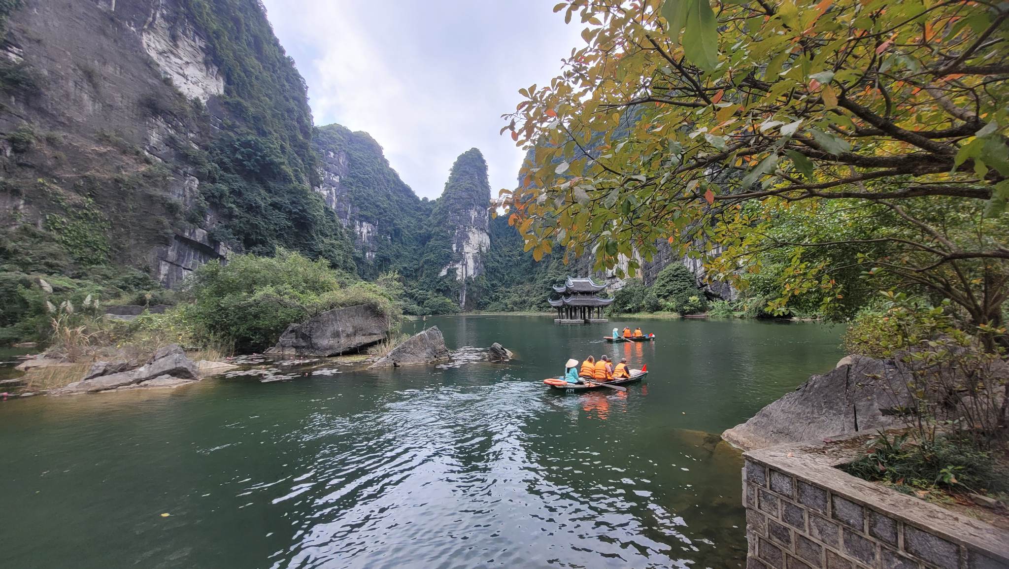 Trải nghiệm ngồi thuyền vãn cảnh ở quần thể du lịch Tràng An - Ninh Bình. Ảnh HL |