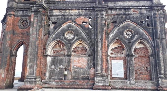 Một phần kiến trúc Nhà thờ đổ Hải Lý, Nam Định. Ảnh dulich Nam Định |