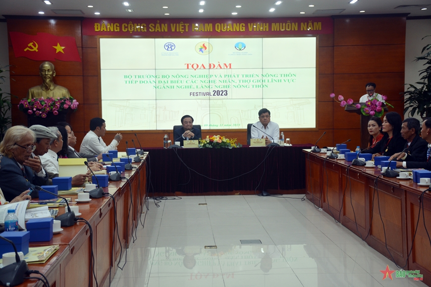 Trong khuôn khổ Festival Bảo tồn và phát triển làng nghề năm 2023, sáng nay (9/11) tại Hà Nội, Bộ Nông nghiệp và Phát triển nông thôn phối hợp Ủy ban nhân dân thành phố Hà Nội tổ chức Tọa đàm gặp gỡ 100 nghệ nhân, thợ giỏi đại diện cho hơn 2 nghìn 107 nghệ nhân, thợ giỏi, và hơn 3,6 triệu lao động trong lĩnh vực ngành nghề trong cả nước.