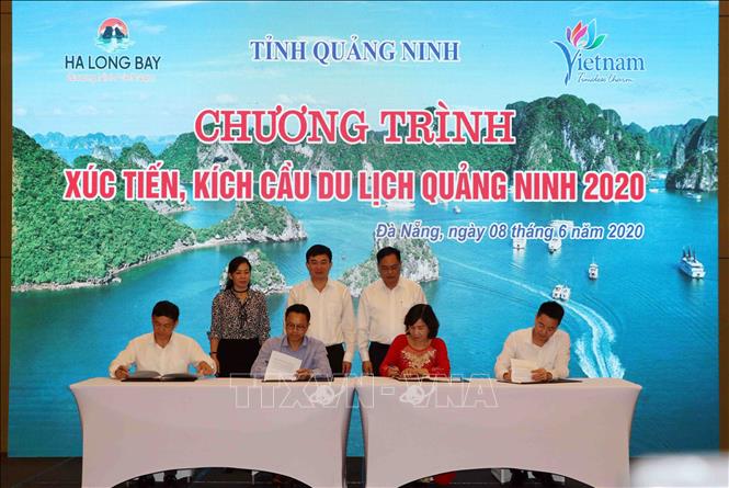 Chiều 8/6, trong khuôn khổ sự kiện “Chương trình xúc tiến, kích cầu du lịch Quảng Ninh năm 2020”, diễn ra Lễ ký kết hợp tác kích cầu du lịch giữa Hiệp hội Du lịch Quảng Ninh với Hiệp hội Du lịch Đà Nẵng; Hãng Hàng không quốc gia Việt Nam và Cảng Hàng không Quốc tế Vân Đồn.