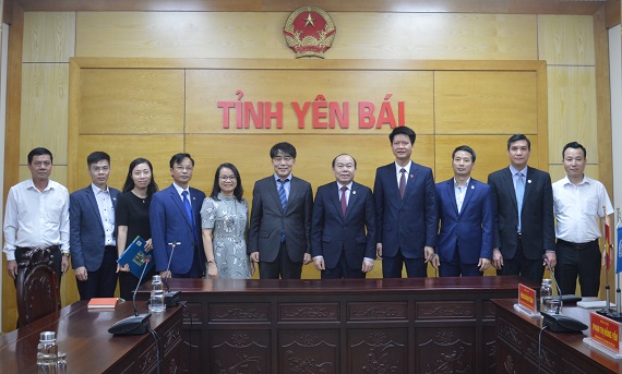 Lãnh đạo UBND tỉnh, lãnh đạo các sở, ngành cùng đoàn công tác chụp ảnh lưu niệm - Ảnh: yenbai.gov.vn |
