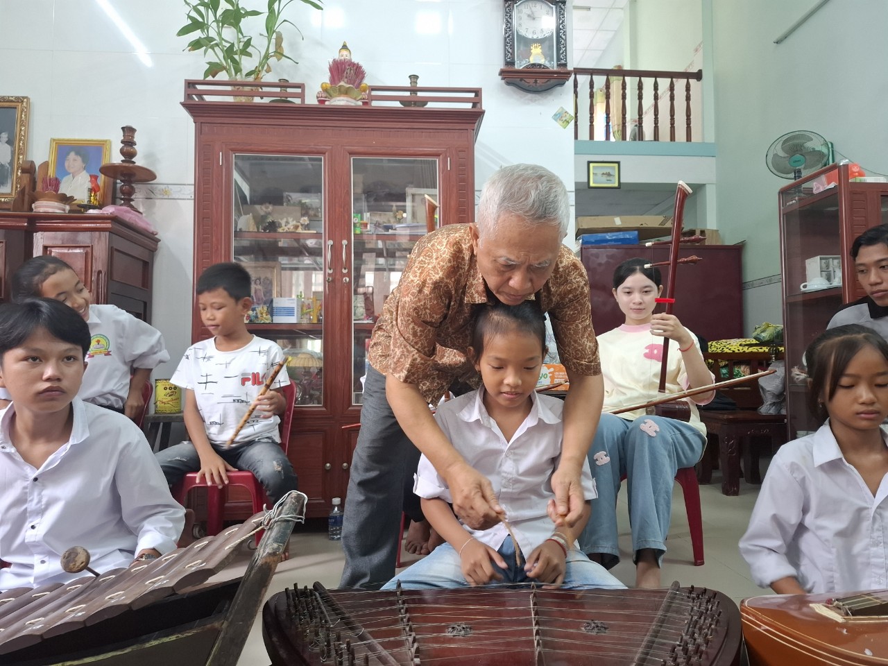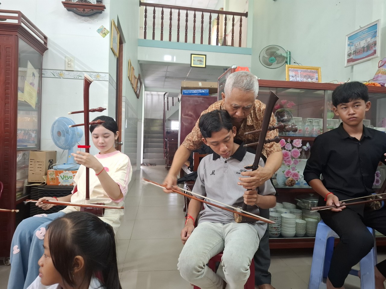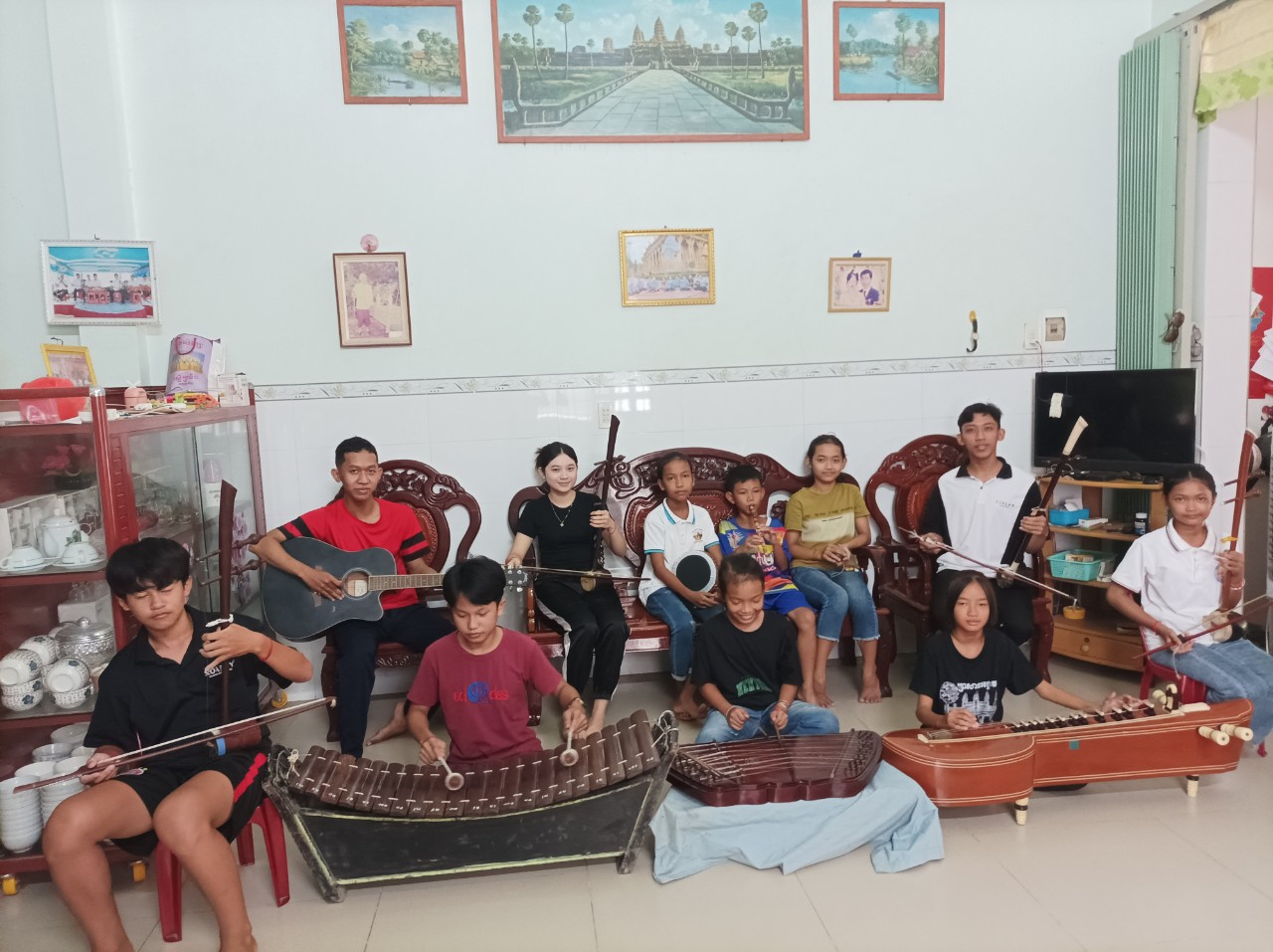 Đến với lớp học, các em được ông Thạch Thia Sê Rây truyền dạy cách chơi nhiều loại nhạc cụ truyền thống của dân tộc Khmer như: đàn khưm, đàn tà khê, đàn cò, đàn gáo, trống tay, thổi sáo v.v…