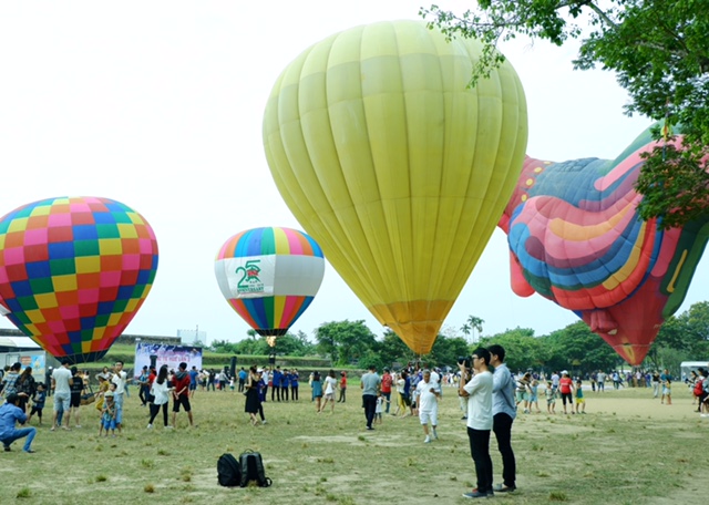 Rất đông du khách thích thú với trải nghiệm này và đã kiên nhẫn xếp số chờ đến lượt: Nhật Anh chia sẻ: “Em chờ chơi bay khinh khí cầu bay treo. Chưa đi nên chưa biết cái này là cái gì. Ở Huế bây giờ là mùa du lịch nên là rất là đông đúc, nhộn nhịp. Lần đầu tiên em trải nghiệm khinh khí cầu bay treo nên rất phấn khích”.