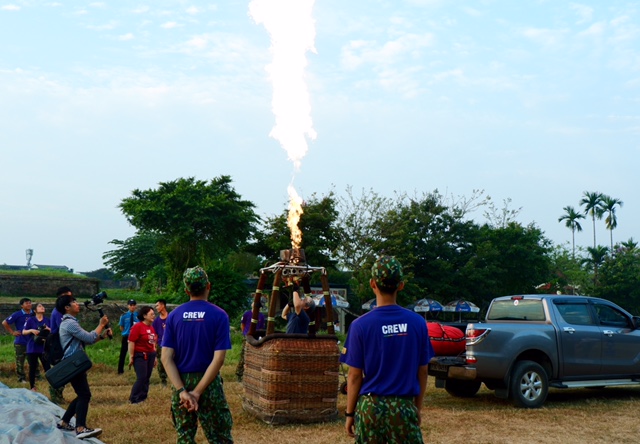 Một nhóm ba đến năm người trong đội phi công ghì giữ chắc chiếc giỏ đan áp sát mặt đất cho tới khi các hành khách trèo vào bên trong. Sau khi ổn định chỗ đứng, phi công bật lửa liên tục ở bệ đốt sử dụng nhiên liệu propane đặt dưới miệng túi và khinh khí cầu dần cất mình bay lên. Ông Nguyễn Văn Hòa, đã nghỉ hưu được chục năm, cho biết đây là lần đầu tiên ông bước lên khinh khí cầu: “Tôi đi máy bay nhiều và quen lắm rồi, còn khinh khí cầu thì chưa. Khinh khí cầu có từ lâu rồi nhưng tôi mới chỉ xem thôi nên bây giờ đi thử cho biết. Tôi thấy rất thú vị. Lên khinh khí cầu cảm giác như mình ở trên nhà cao tầng nhìn xuống”.