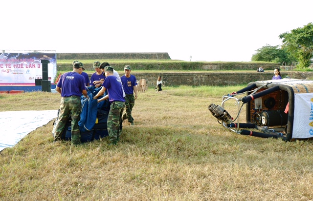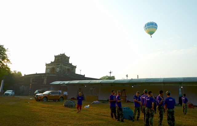 Trong ba ngày diễn ra lễ hội Khinh khí cầu quốc tế Huế 2019, ngay từ sáu giờ sáng, sân Hàm Nghi ở thành phố Huế tấp nập các đoàn phi công của nhiều quốc gia như Nhật Bản, Hà Lan, Thái Lan, Malaysia, Việt Nam. Từ trên ô tô, nhóm phi công khẩn trương khuân đồ xuống sân gồm vỏ khí cầu và giỏ mây chở hành khách.