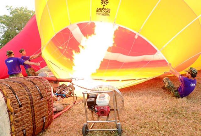 Sau khi quả khinh khí cầu được thổi đầy không khí và phồng to, người ta sử dụng khí đốt propane để thổi vào bên trong. Quả bóng khổng lồ từ từ nâng mình lên khỏi mặt đất do không khí bên trong được đốt nóng có tỉ trọng nhẹ hơn so với bên ngoài, tạo ra lực nâng. Quả bóng khổng lồ lung linh dưới ánh nắng sớm mai, có màu sắc đẹp rực rỡ.