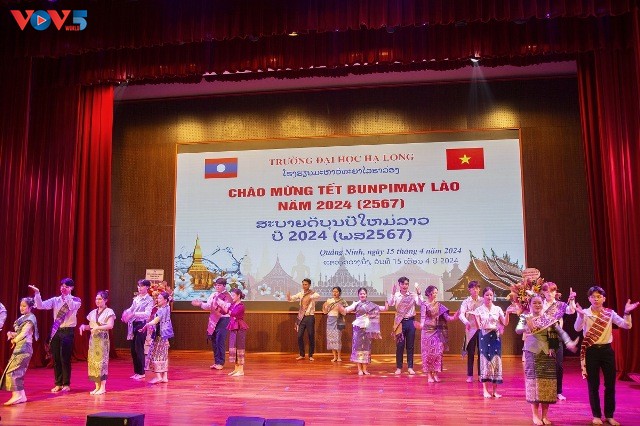 Hôm qua (15/4), tại thành phố Uông Bí (Quảng Ninh), Trường Đại học Hạ Long tổ chức đón tết cổ truyền Bunpimay năm 2024 cho lưu học sinh Lào đang theo học tại trường. Trong chương trình, lưu học sinh Lào và sinh viên Việt Nam đã giao lưu các tiết mục văn nghệ đặc sắc; thực hiện một số nghi lễ truyền thống của tết Bunpimay.