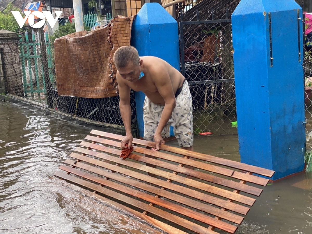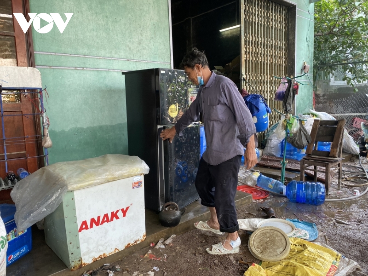 Hết đêm 30/11 và đến sáng hôm sau nước bắt đầu mới rút nhưng rút rất chậm. Cái dự phòng của người dân đến đó thôi và canh theo mức lụt 2009 thua 1m. Đồ đạc hư hỏng nhiều, còn nguyên nhưng mà không rả thôi. Xong lụt rồi thì mình dọn dẹp, những gì hư thì mình bỏ thôi”.