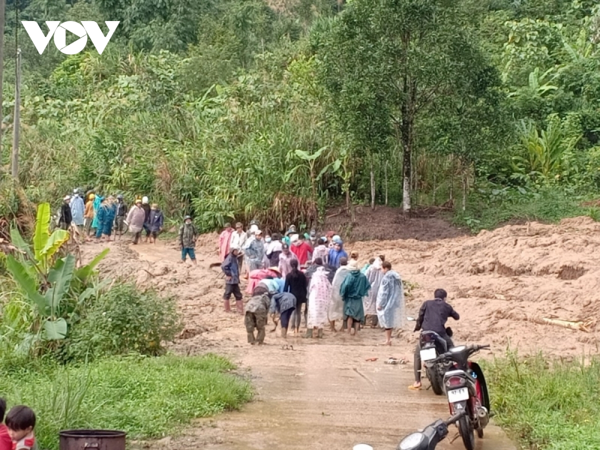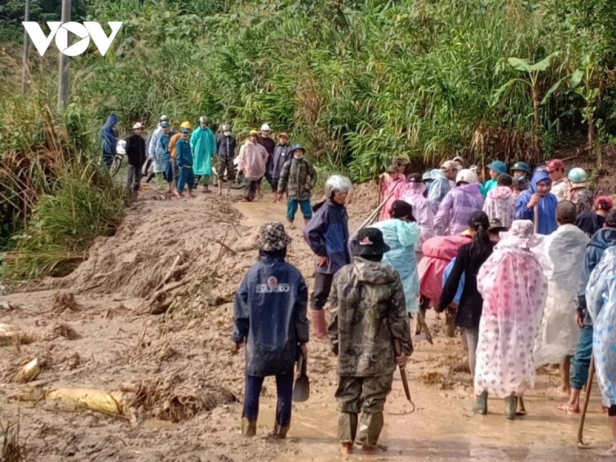 Ông Trần Văn Mẫn, Phó Chủ tịch UBND huyện Nam Trà My, tỉnh Quảng Nam cho biết, chính quyền địa phương tập trung khắc phục các điểm sạt lở để thông tuyến: “Tập trung khắc phục tất cả các tuyến đường, đảm bảo thông tuyến tạm thời cho người dân đi lại. Hiện chỉ còn đường đi Trà Don, Nam Linh vẫn còn cấn điểm sạt lở trên Quốc lộ 40B, tại km 110, khoảng 15 giờ chiều nay sẽ thông tuyến tạm thời. Các phương tiện đã tập trung về các điểm sạt lở vì trước đó đã lên phương án sẵn sàng”.