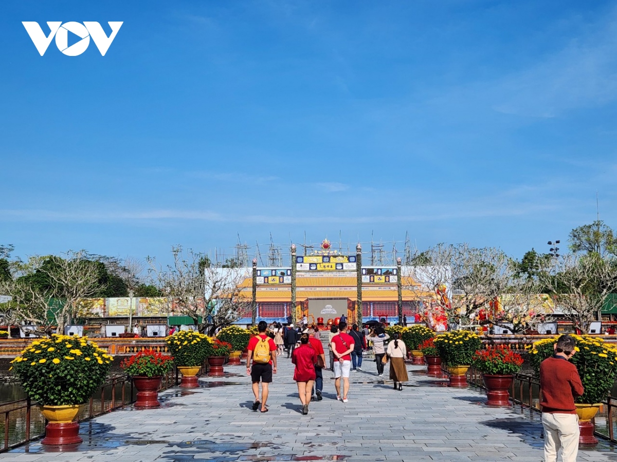 Du khách tham quan Đại Nội Huế trong dịp Tết. Ảnh: VOV |