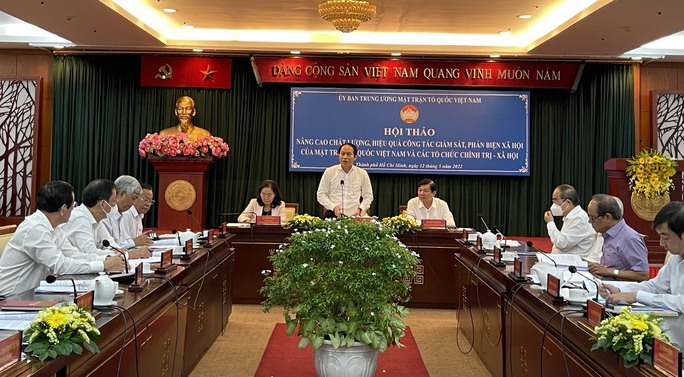 Ngày 12/5, tại Thành phố Hồ Chí Minh, Ban Thường trực Ủy ban Trung ương Mặt trận Tổ quốc Việt Nam tổ chức Hội thảo “Nâng cao chất lượng, hiệu quả công tác giám sát, phản biện xã hội của Mặt trận Tổ quốc (MTTQ) Việt Nam và các tổ chức chính trị - xã hội”. Hội thảo nhằm đánh giá những kết quả đạt được, hạn chế, nguyên nhân và bài học kinh nghiệm trong quá trình triển khai để góp phần hoàn thiện Đề án trình Ban Bí thư ban hành Chỉ thị tăng cường sự lãnh đạo của Đảng đối với công tác giám sát, phản biện xã hội của MTTQ Việt Nam.