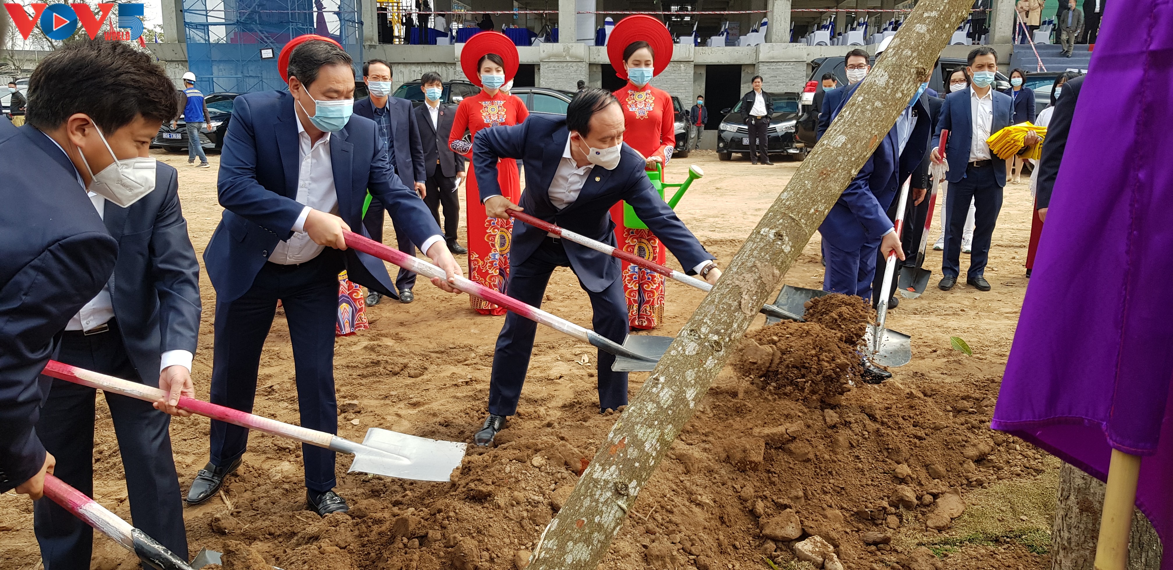 Các đại biểu trồng cây xanh. - Ảnh: Ngọc Anh/VOV5 |