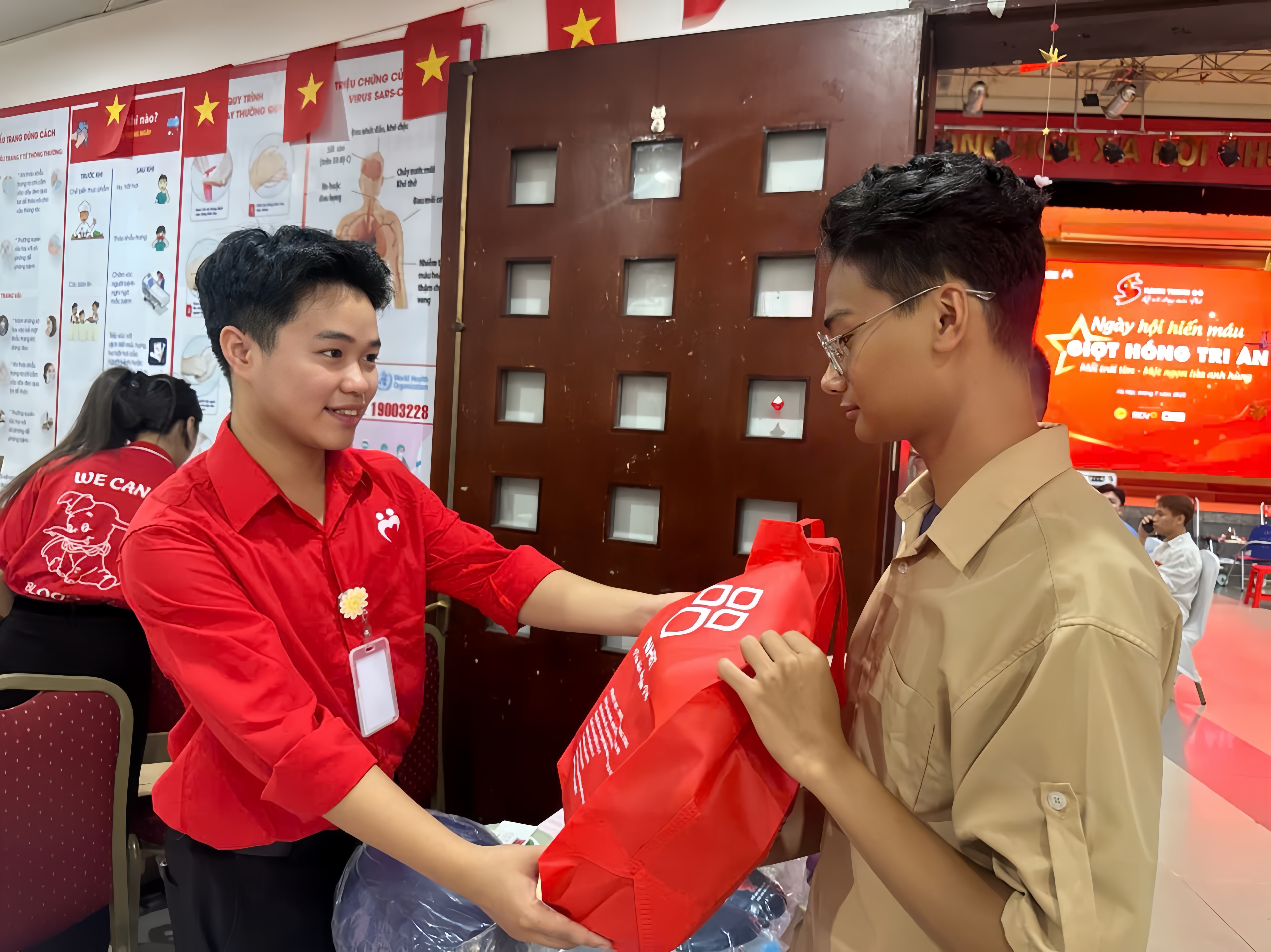 Không chỉ có sinh viên các trường đại học, chương trình “Giọt hồng tri ân 2025” còn thu hút sự tham gia của nhiều học sinh lớp 12 – những bạn trẻ vừa hoàn thành kỳ thi tốt nghiệp THPT quốc gia và quyết định dành mùa hè của mình để làm tình nguyện. Bạn Trương Đức Mạnh - học sinh Trường THPT Đào Duy Từ cho biết: "Em biết đến chương trình Giọt hồng tri ân 2025 là qua trang Fanpage của Hội Thanh niên vận động hiến máu Việt Nam. Trên trang Fanpage có đăng bài tuyển tình nguyện viên cho chương trình hiến máu giọt hồng tri ân Hành trình Đỏ thủ đô. Đối với em ban đầu thì cũng chỉ là đăng ký cho dịp hè này có hoạt động để đợi điểm thi thôi. Nhưng mà cá nhân em sau khi tham gia hoạt động này thì thấy môi trường tình nguyện ở trong hoạt động vận động hiến máu rất là nhân văn và ý nghĩa. Có rất nhiều hoạt động ý nghĩa nhưng mà hoạt động hiến máu là một hoạt động cứu người. Nên là cá nhân em sau khi biết được điểm và lên trường đại học thì em cũng sẽ đăng ký làm tình nguyện viên của một đội máu của trường đại học mà mình theo học.”