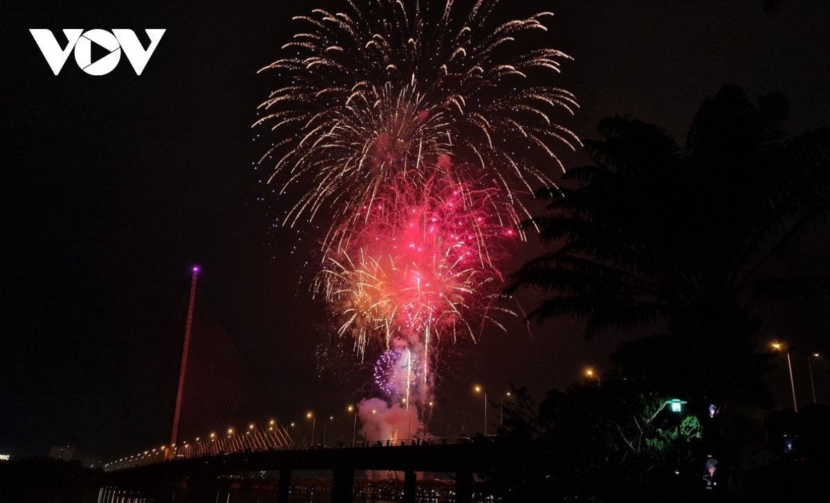Đà Nẵng bắn pháo hoa tại 3 điểm là cầu Nguyễn Văn Trỗi, Trung tâm hành chính huyện Hoà Vang, Trung tâm hành chính quận Liên Chiểu. Ảnh: VOV |