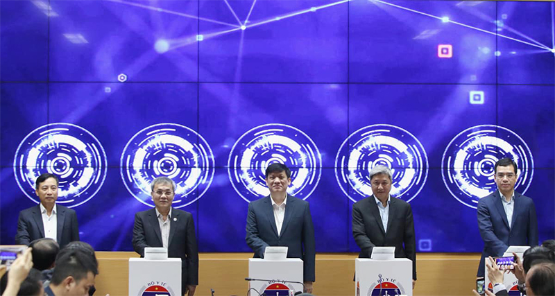 Đại biểu bấm nút khai trương Cổng công khai y tế. -Ảnh: kinhtedothi.vn |