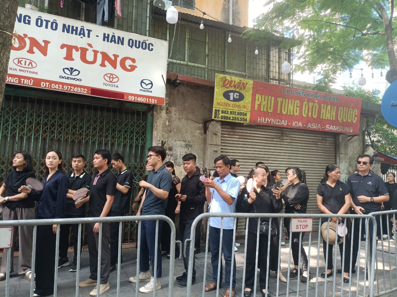 Dù các chốt giao thông đã thông báo đến 11h15 sẽ đóng chốt để chuẩn bị cho lễ truy điệu Tổng Bí thư diễn ra lúc 13 giờ chiều nay, nhưng 11 giờ trưa nay, tại các nút giao thông vào Nhà tang lễ Quốc gia, vẫn còn rất đông người dân chờ được vào viếng Tổng Bí thư.