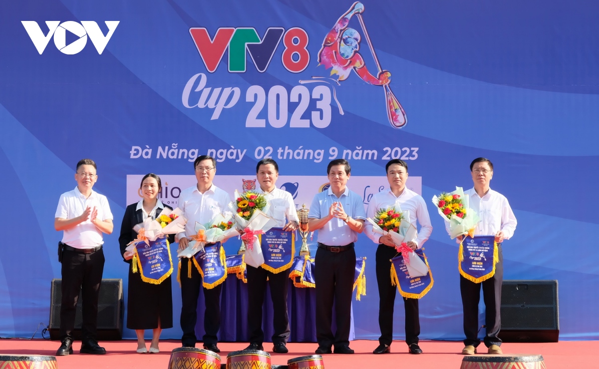 Ban tổ chức tặng hoa và cờ lưu niệm cho các nhà tài trợ Giải - Ảnh: VOV |