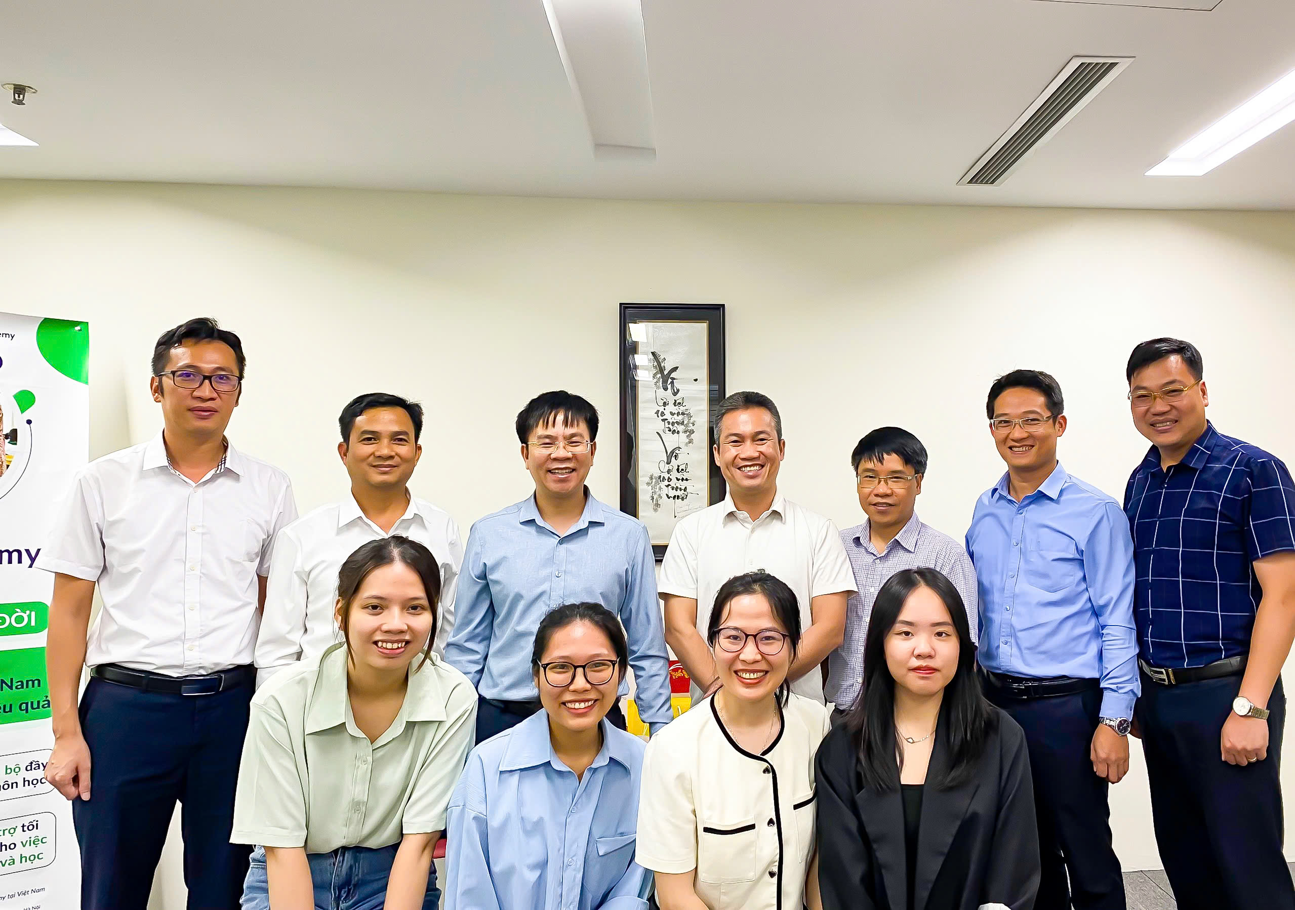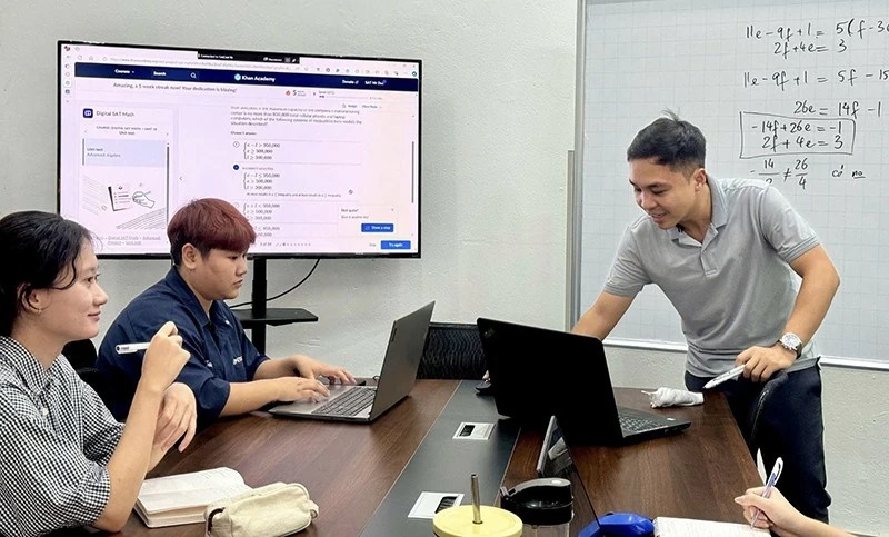 Thầy Phan Minh Đức cùng đội ngũ Future Me thảo luận về lộ trình học cho lớp học mở trên nền tảng Khan Academy. |